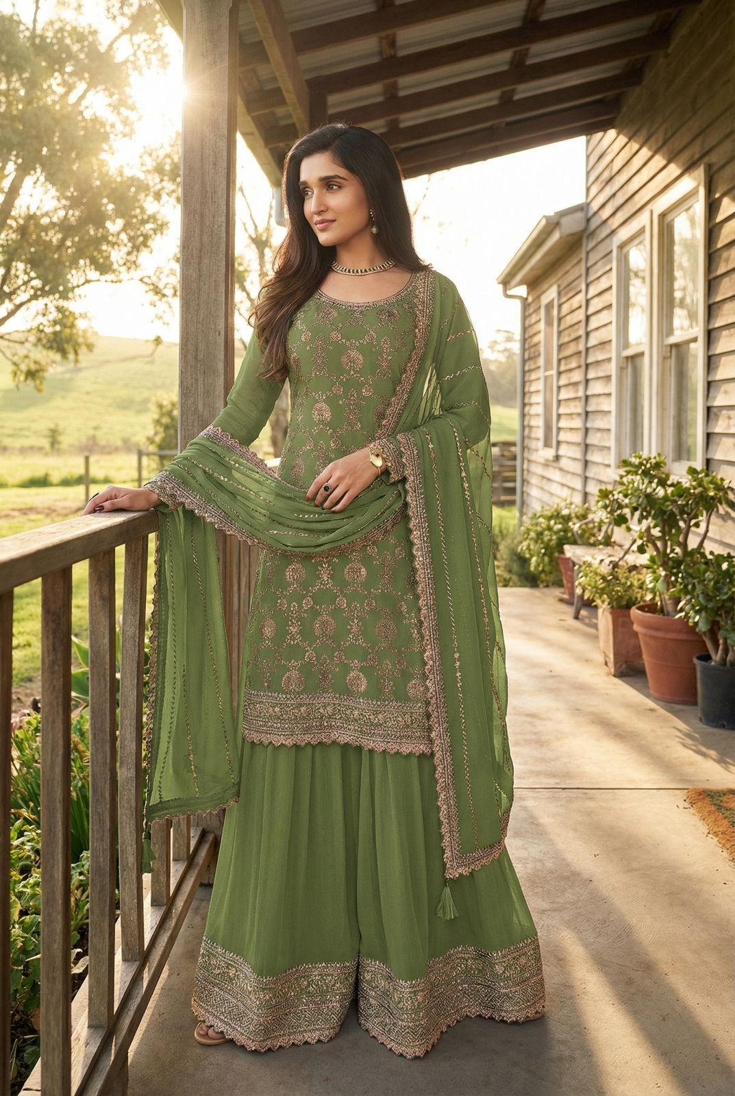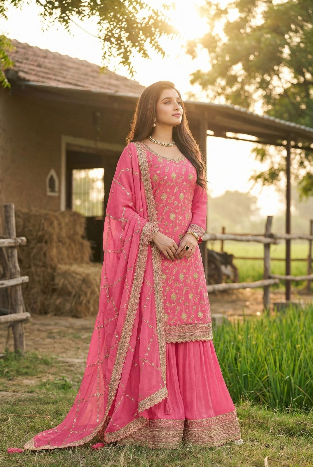 Top: Chinon Jeqaed Embroidery Work | Bottom: Chinon Embroidery Work | Dupatta: Chinon Embroidery Work