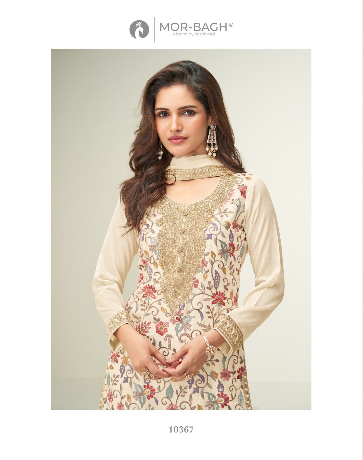 Premium Real Chinnon Silk (Heavy Look Embroidered Top with Hand Mirror Work, Embroidered Palazzo, Embroidered Net Dupatta)