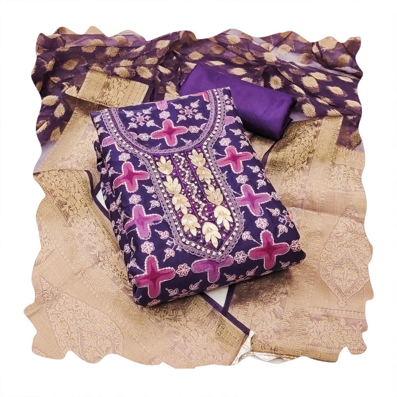 - Real Georgette Top, Real Georgette Bottom, Real Georgette Dupatta