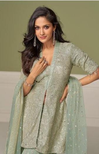Top: Real Georgette | Dupatta: Real Georgette | Plazoo: Real Georgette | Work: Embroidery & Hand Work