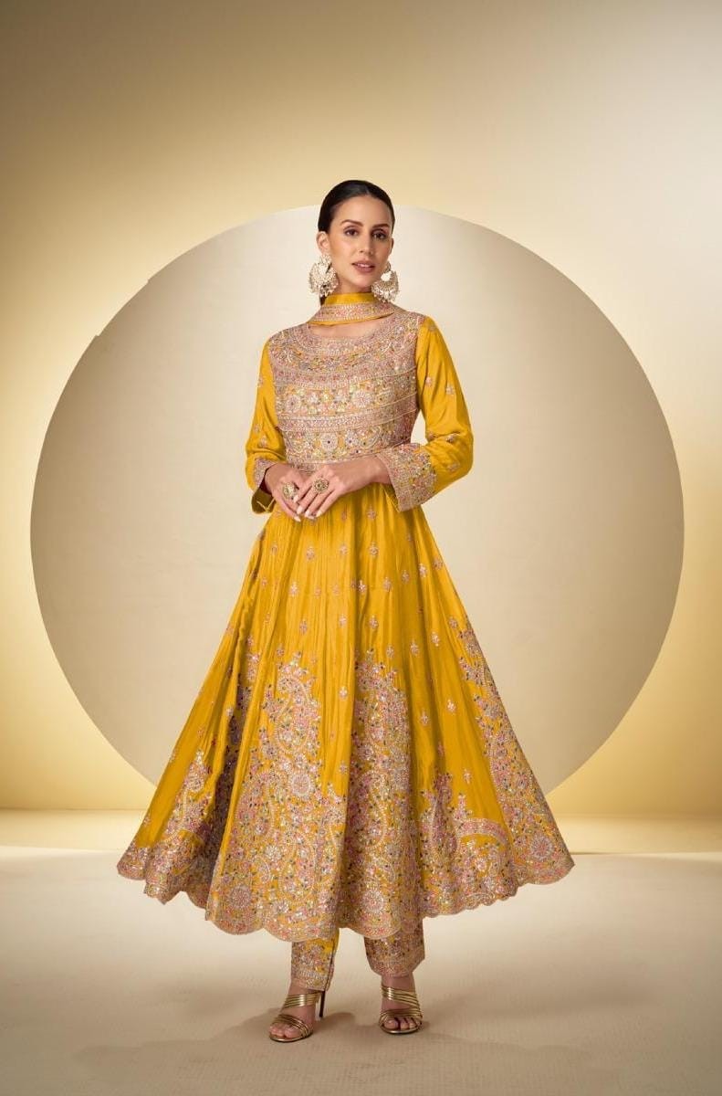 Top: Real Chinon | Dupatta: Real Chinon | Plazoo: Real Chinon | Note: Embroidery Work Only