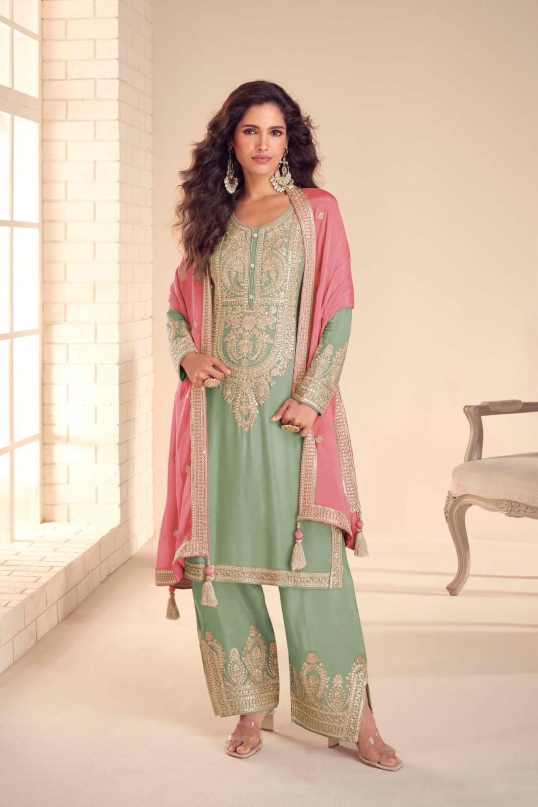 Top: Real Chinon | Dupatta: Real Chinon | Bottom: Real Chinon | Work: Embroidery Work
