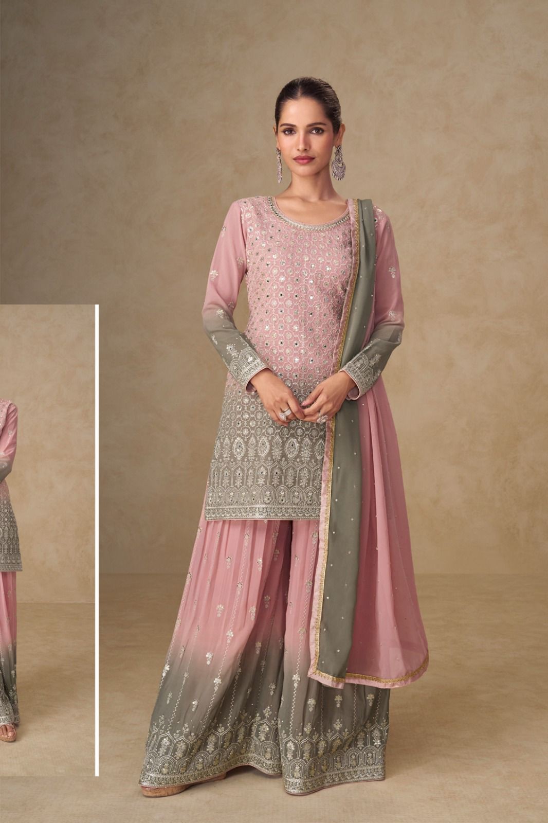 Top: Real Georgette | Dupatta: Real Georgette | Plazoo: Real Georgette | Note: Embroidery & Handwork Only