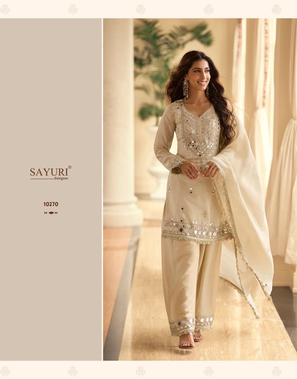 Fabric Details: Pure Viscos Natural Crepe Silk / Pure Viscos Simar Organza Silk With Tulip Hand Mirror Work And Hand-Embellished Gota Patti Detailing