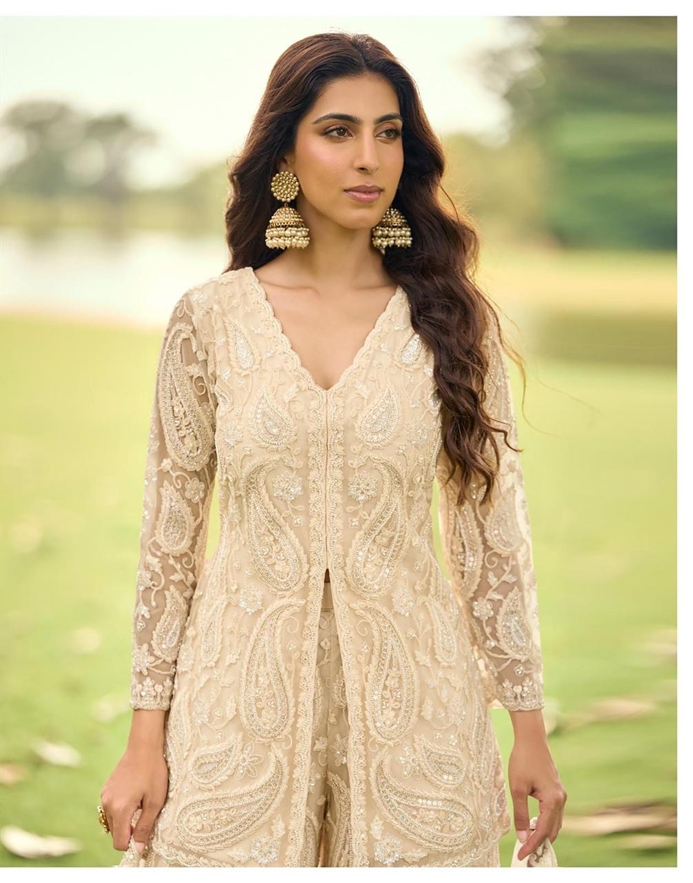 Work: Exclusive Festive Look Front And Back Beads Embroidered Diamond Touch Up Top With Heavy Beads Embroidered Palazzo And Dupatta