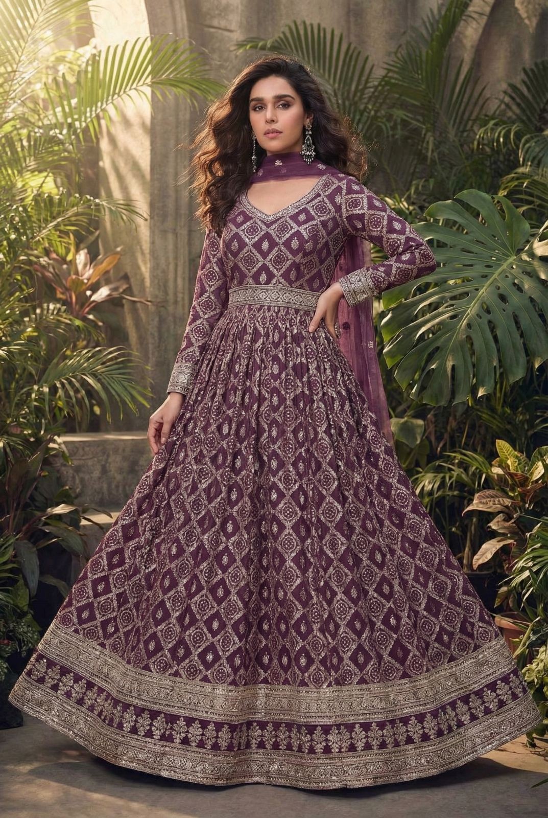 - Premium Real Chinnon Silk (Heavy Look Embroidered Top with Hand Mirror Work, Embroidered Palazzo, Embroidered Net Dupatta)