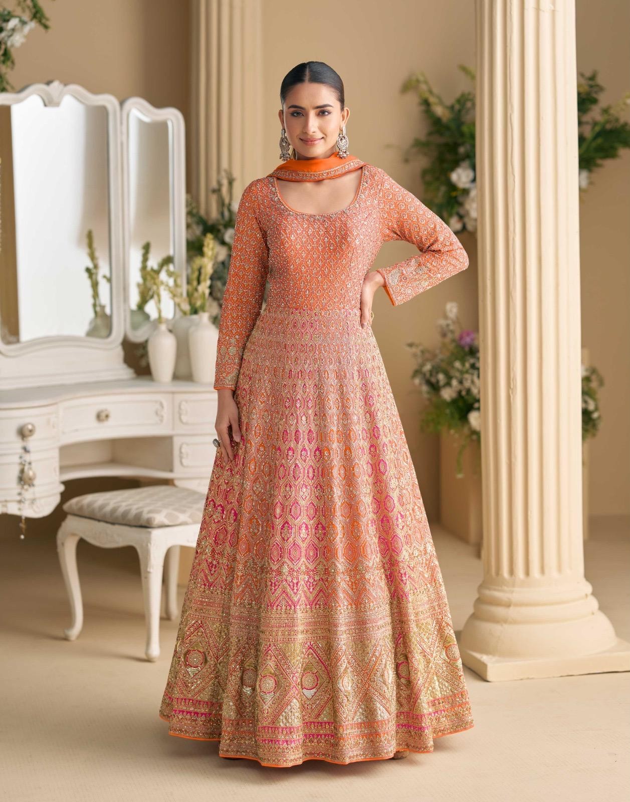 Real Premium Gerogette ( Full Heavy Look Embroidered Seroski Zarkan Gown With Embroidered Dupatta )