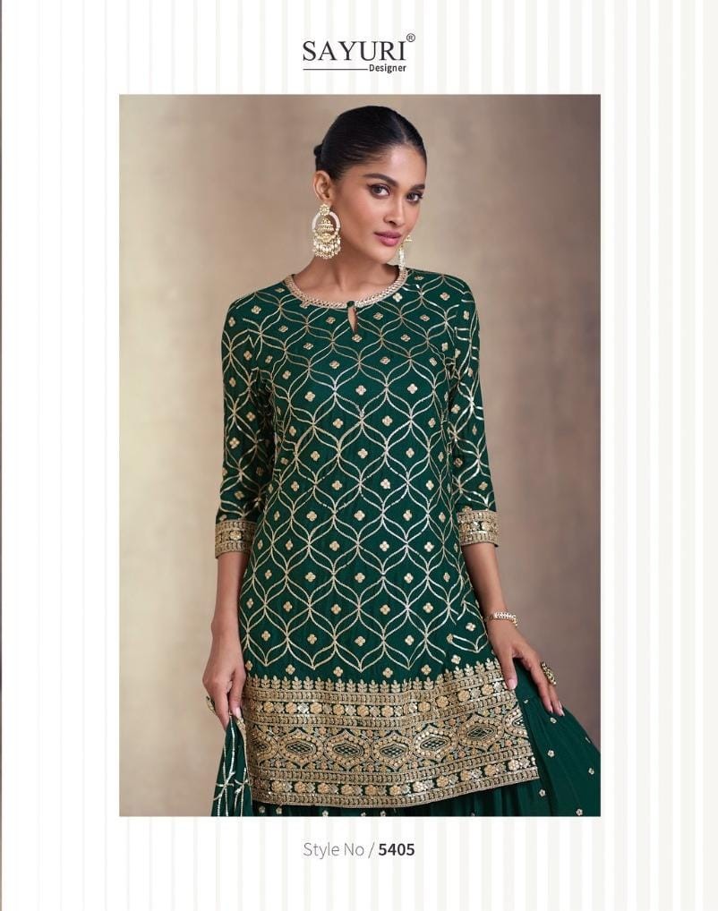 Premium Real Chinnon Silk (Heavy Look Embroidered Top with Hand Mirror Work, Embroidered Palazzo, Embroidered Net Dupatta)