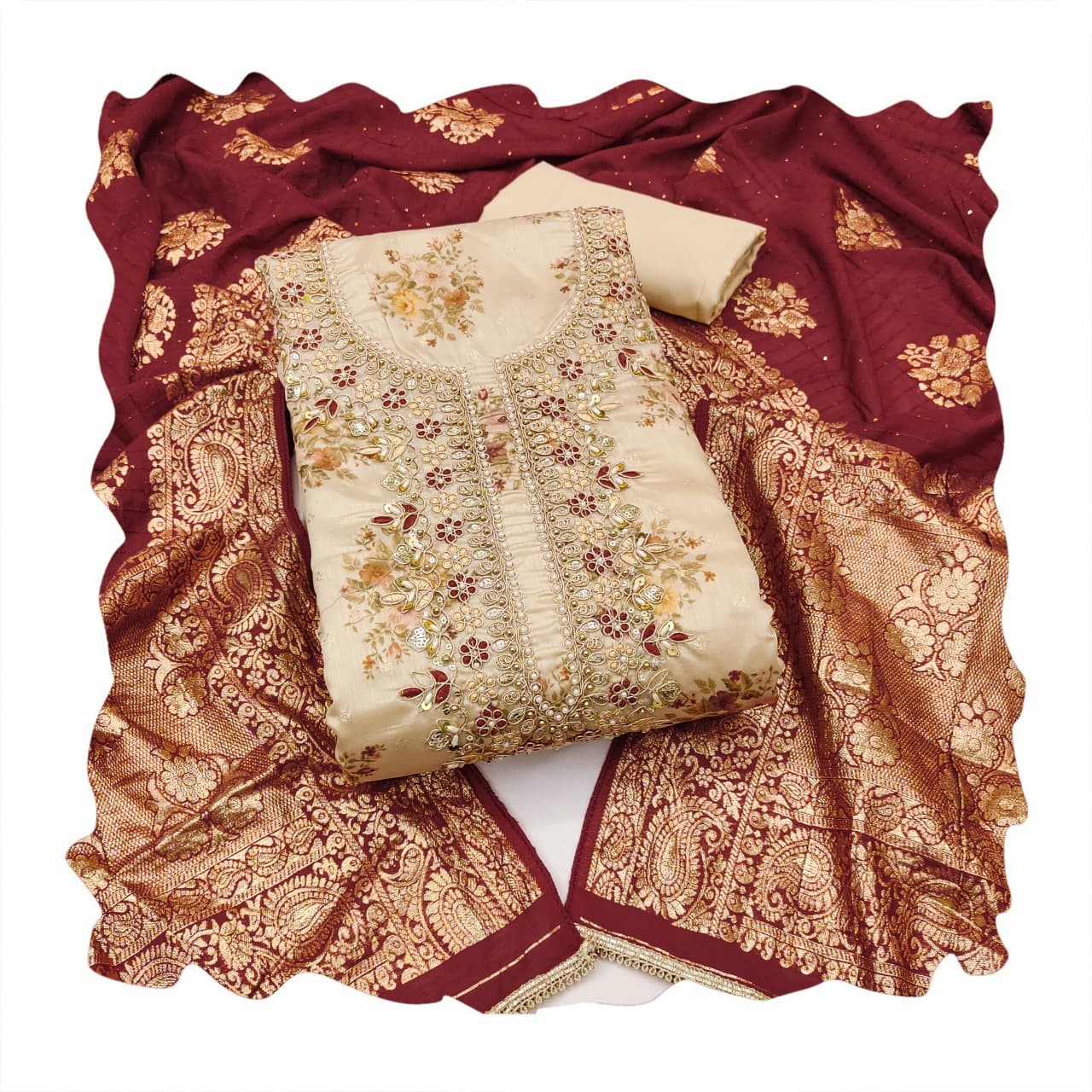 - Dupatta: Soft Chanderi Banarshi (2.15 Mit)