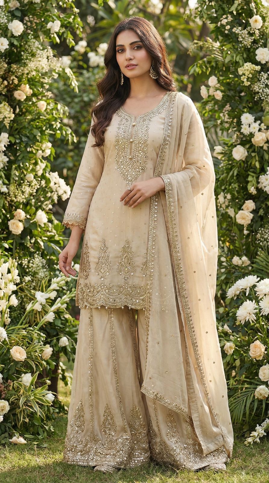 Top: Viscose Jacquard Silk Embroidered Work | Bottom: Viscose Simar Embroidery Work | Dupatta: Silk Embroidered Work
